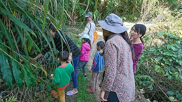沿途老闆介紹著設置在路旁的機關(用來捉山豬),大人小孩都看的很認真