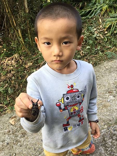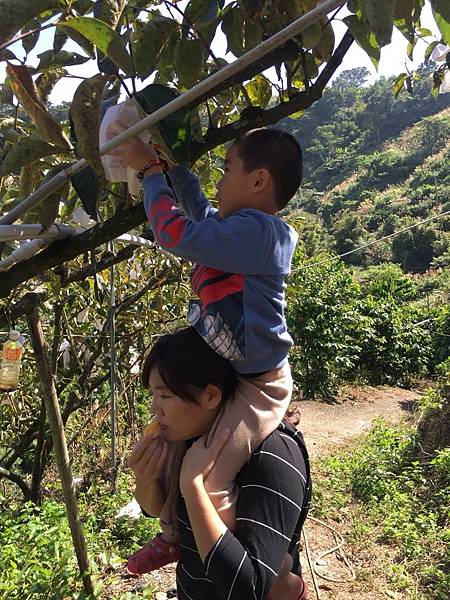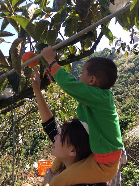 趁著早上老闆採甜柿的空檔再讓小鬼放電一下,操累下山才好睡才不會吐